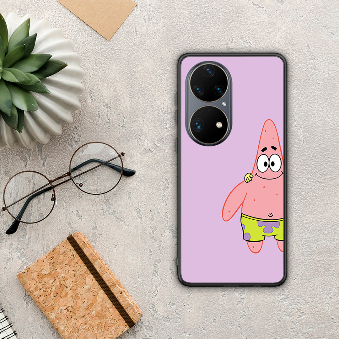 Θήκη Huawei P50 Pro Friends Patrick από τη Smartfits με σχέδιο στο πίσω μέρος και μαύρο περίβλημα | Huawei P50 Pro Friends Patrick case with colorful back and black bezels