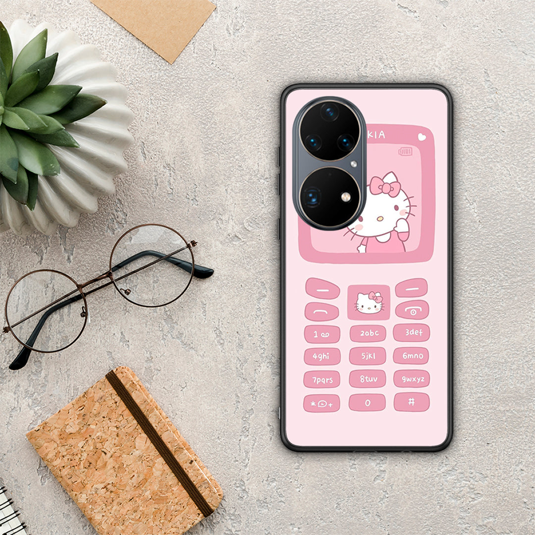Θήκη Αγίου Βαλεντίνου Huawei P50 Pro Hello Kitten από τη Smartfits με σχέδιο στο πίσω μέρος και μαύρο περίβλημα | Huawei P50 Pro Hello Kitten case with colorful back and black bezels