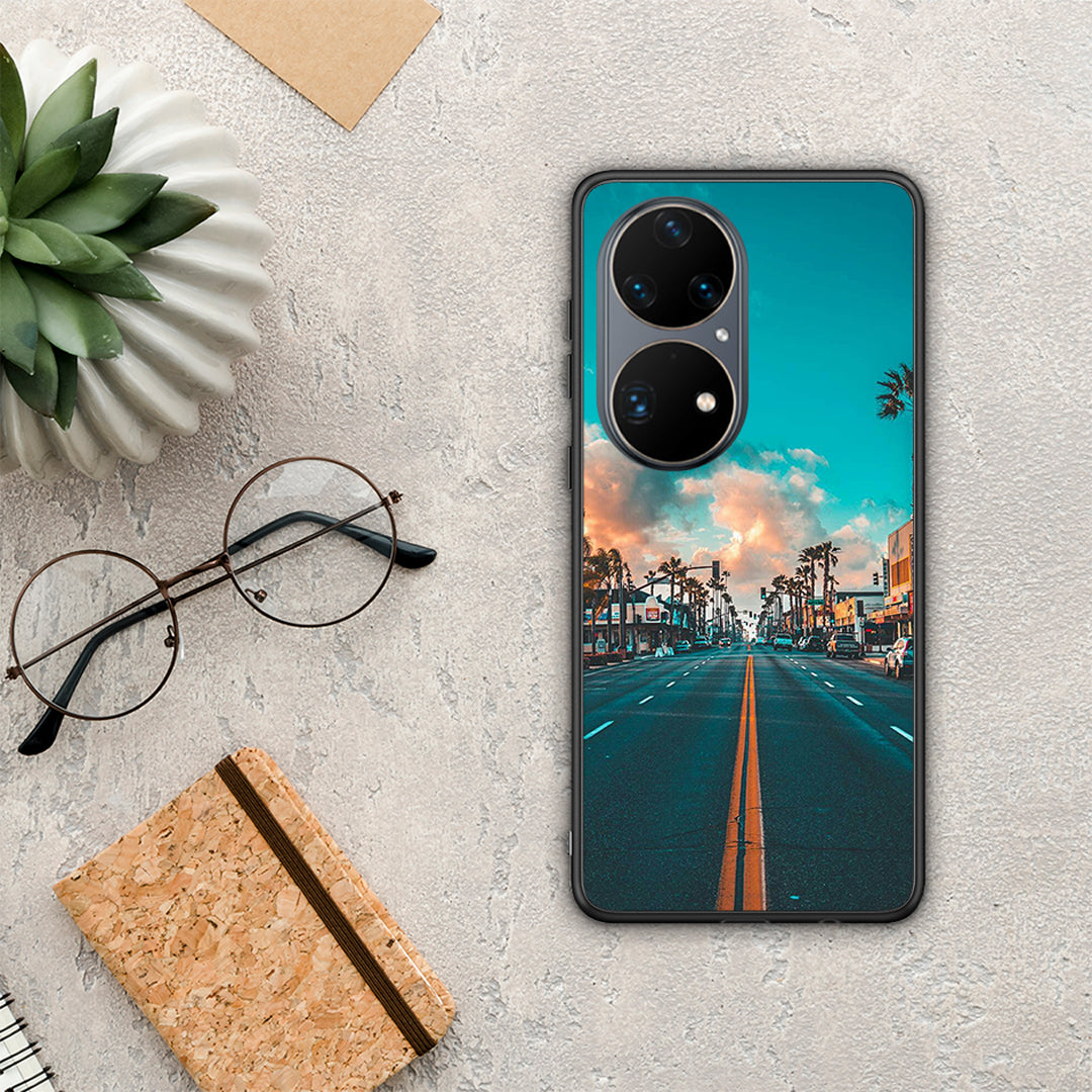 Θήκη Huawei P50 Pro City Landscape από τη Smartfits με σχέδιο στο πίσω μέρος και μαύρο περίβλημα | Huawei P50 Pro City Landscape case with colorful back and black bezels