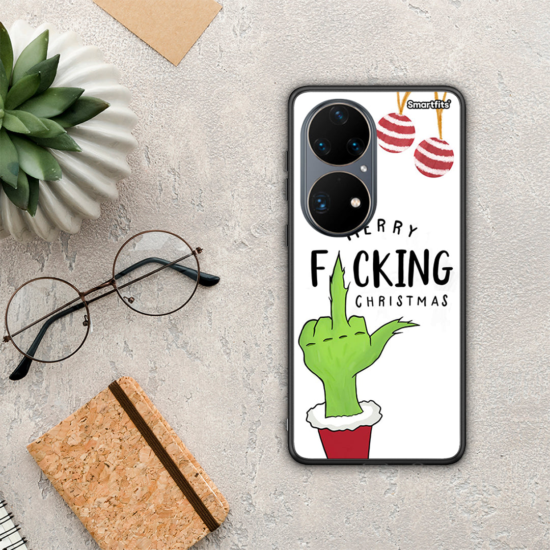 Θήκη Huawei P50 Pro Merry F Xmas από τη Smartfits με σχέδιο στο πίσω μέρος και μαύρο περίβλημα | Huawei P50 Pro Merry F Xmas case with colorful back and black bezels