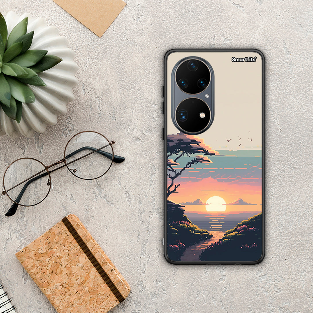 Θήκη Huawei P50 Pro Pixel Sunset από τη Smartfits με σχέδιο στο πίσω μέρος και μαύρο περίβλημα | Huawei P50 Pro Pixel Sunset case with colorful back and black bezels