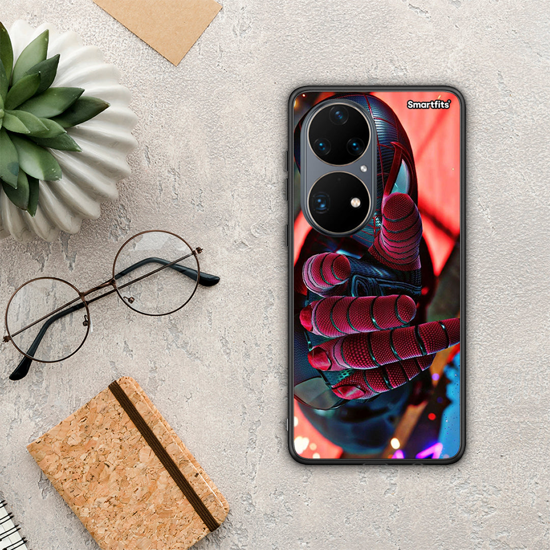 Θήκη Huawei P50 Pro Spider Hand από τη Smartfits με σχέδιο στο πίσω μέρος και μαύρο περίβλημα | Huawei P50 Pro Spider Hand case with colorful back and black bezels
