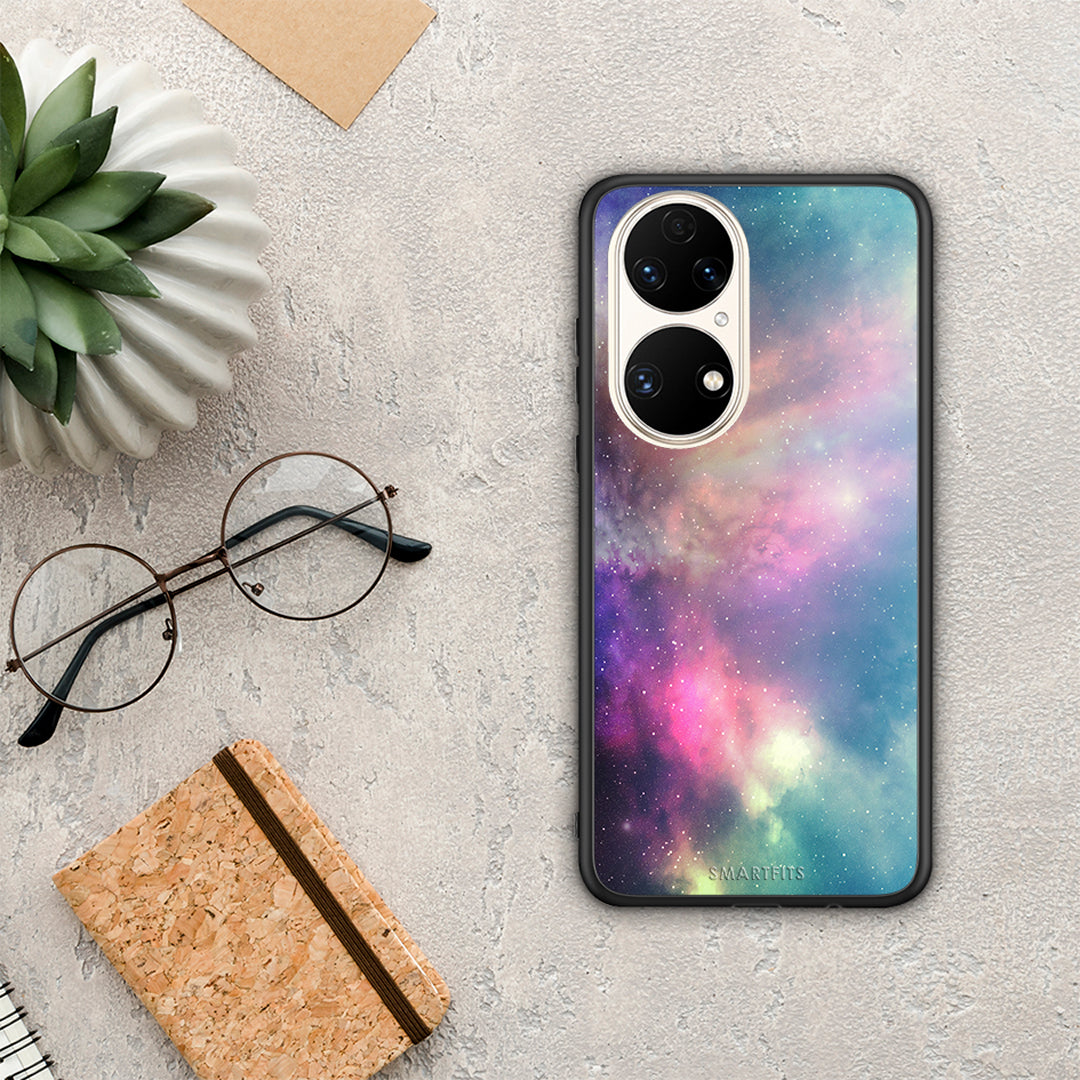 Θήκη Huawei P50 Rainbow Galaxy από τη Smartfits με σχέδιο στο πίσω μέρος και μαύρο περίβλημα | Huawei P50 Rainbow Galaxy case with colorful back and black bezels