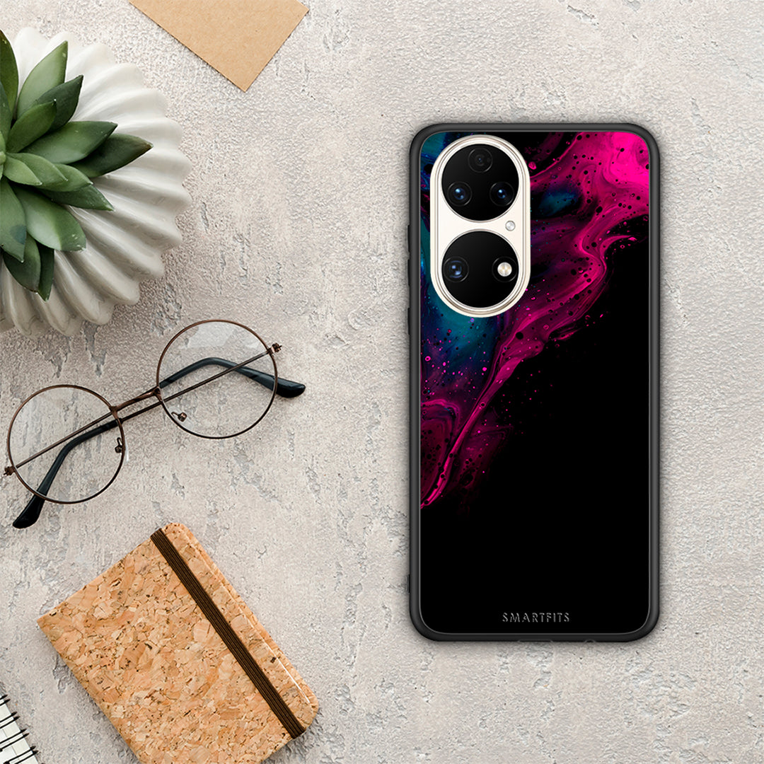 Θήκη Huawei P50 Pink Black Watercolor από τη Smartfits με σχέδιο στο πίσω μέρος και μαύρο περίβλημα | Huawei P50 Pink Black Watercolor case with colorful back and black bezels