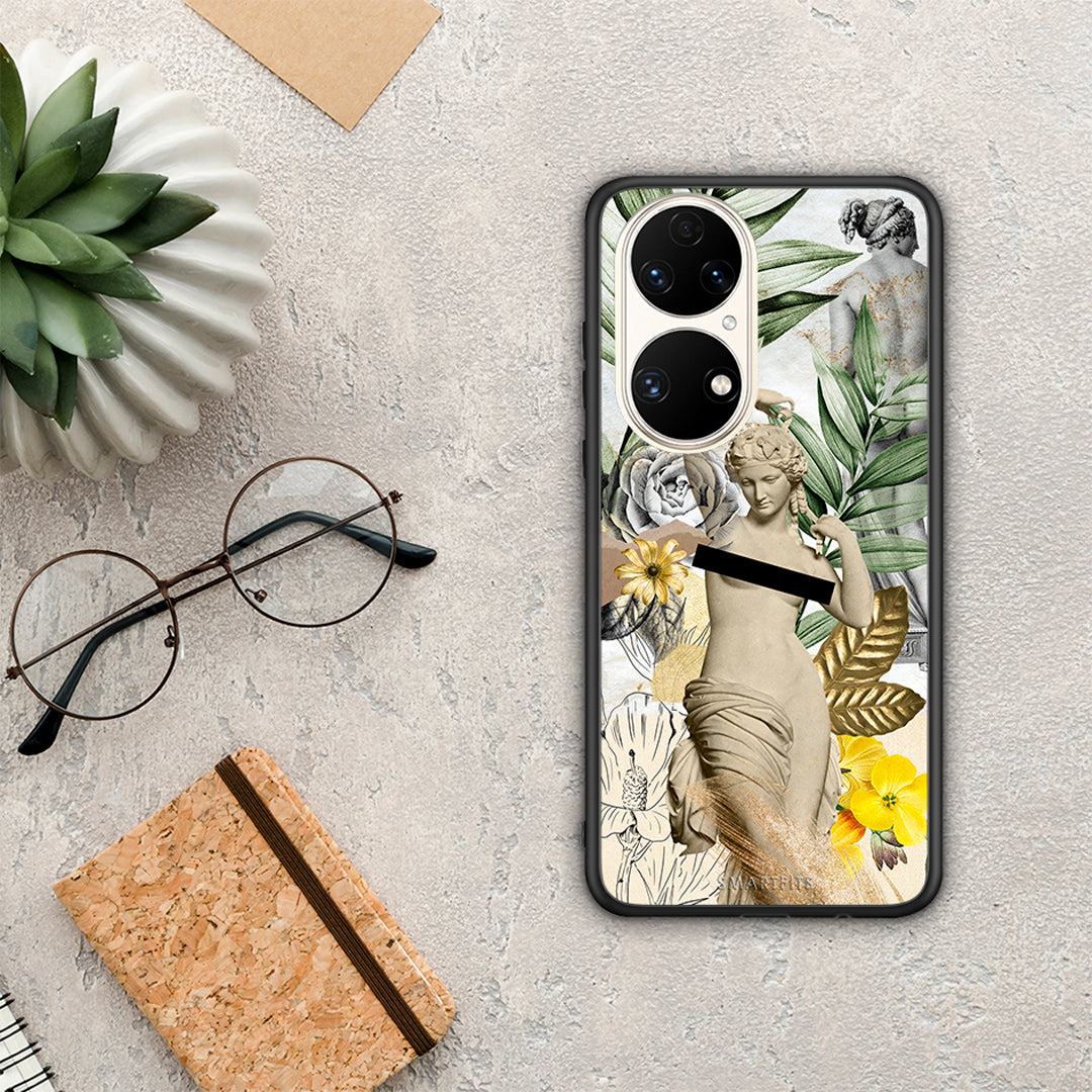 Θήκη Huawei P50 Woman Statue από τη Smartfits με σχέδιο στο πίσω μέρος και μαύρο περίβλημα | Huawei P50 Woman Statue case with colorful back and black bezels