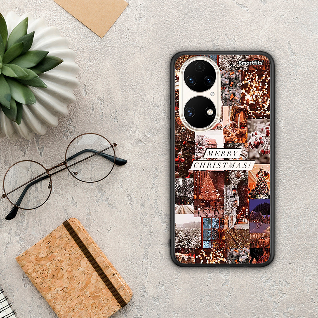 Θήκη Huawei P50 Xmas Collage από τη Smartfits με σχέδιο στο πίσω μέρος και μαύρο περίβλημα | Huawei P50 Xmas Collage case with colorful back and black bezels