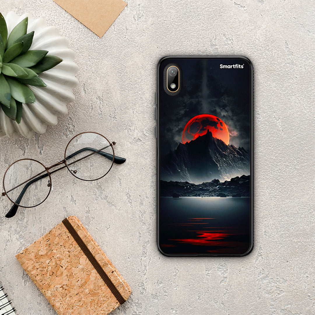 Θήκη Huawei Y5 2019 Red Full Moon από τη Smartfits με σχέδιο στο πίσω μέρος και μαύρο περίβλημα | Huawei Y5 2019 Red Full Moon case with colorful back and black bezels