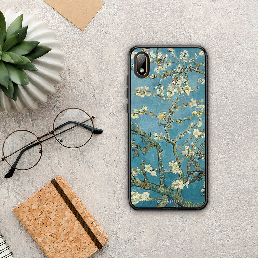 Θήκη Huawei Y5 2019 White Blossoms από τη Smartfits με σχέδιο στο πίσω μέρος και μαύρο περίβλημα | Huawei Y5 2019 White Blossoms case with colorful back and black bezels