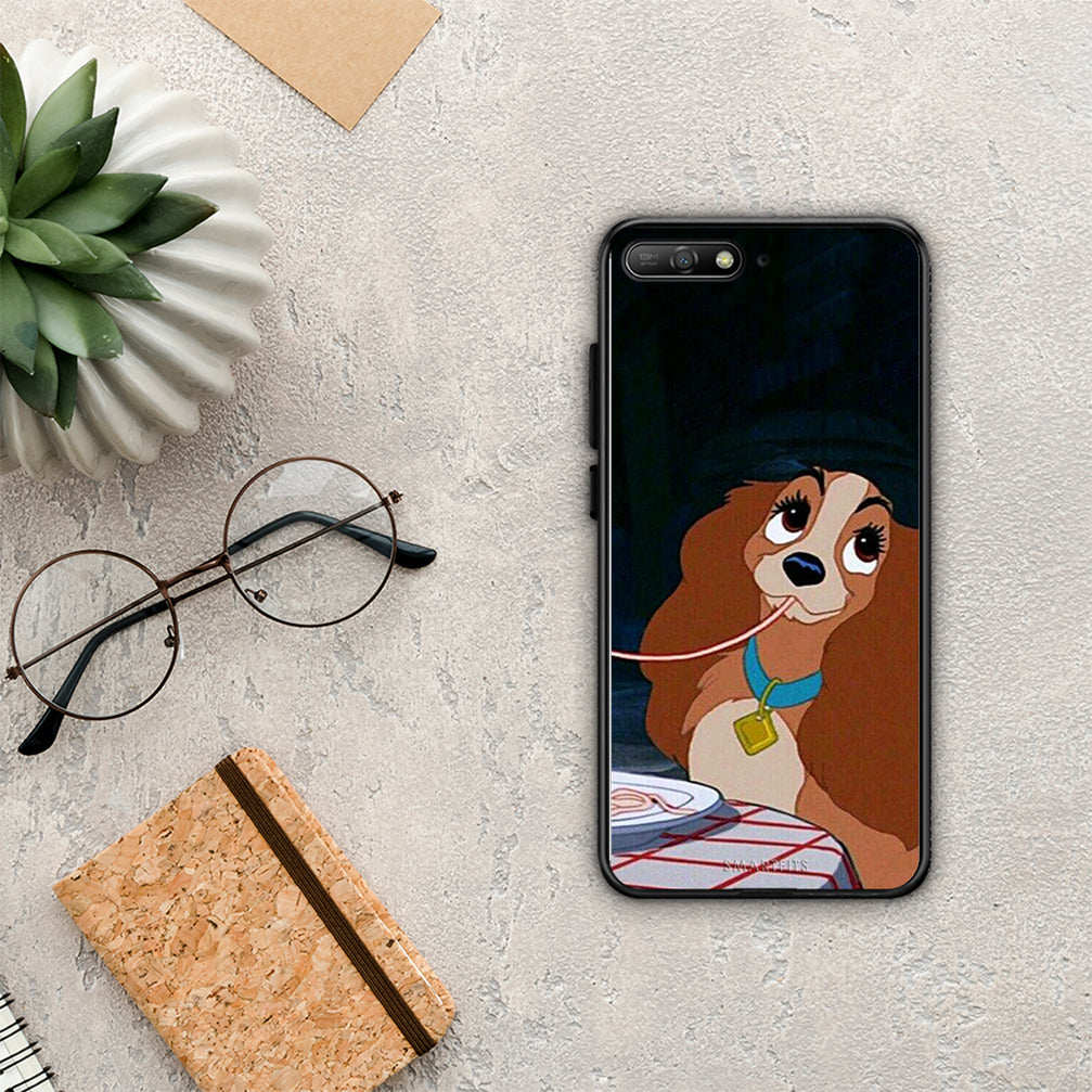 Θήκη Αγίου Βαλεντίνου Huawei Y6 2018 Lady And Tramp 2 από τη Smartfits με σχέδιο στο πίσω μέρος και μαύρο περίβλημα | Huawei Y6 2018 Lady And Tramp 2 case with colorful back and black bezels