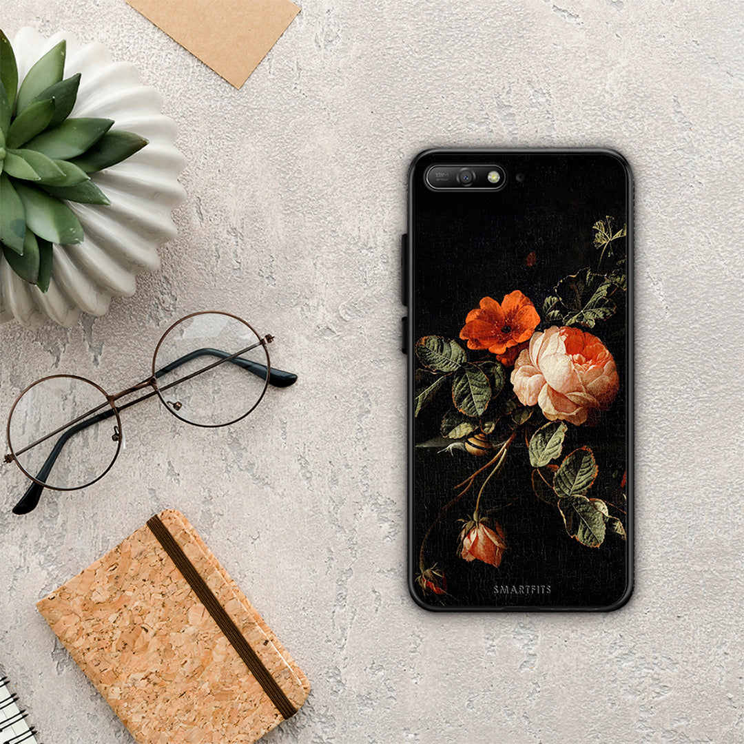 Θήκη Huawei Y6 2018 Vintage Roses από τη Smartfits με σχέδιο στο πίσω μέρος και μαύρο περίβλημα | Huawei Y6 2018 Vintage Roses case with colorful back and black bezels