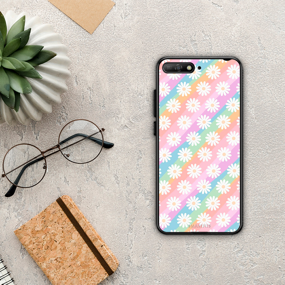 Θήκη Huawei Y6 2018 White Daisies από τη Smartfits με σχέδιο στο πίσω μέρος και μαύρο περίβλημα | Huawei Y6 2018 White Daisies case with colorful back and black bezels
