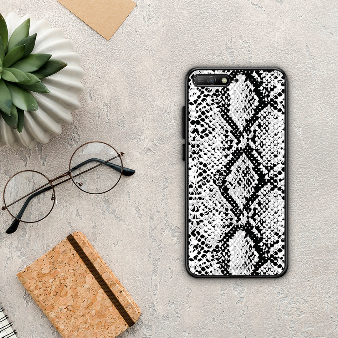 Θήκη Huawei Y6 2018 White Snake Animal από τη Smartfits με σχέδιο στο πίσω μέρος και μαύρο περίβλημα | Huawei Y6 2018 White Snake Animal case with colorful back and black bezels