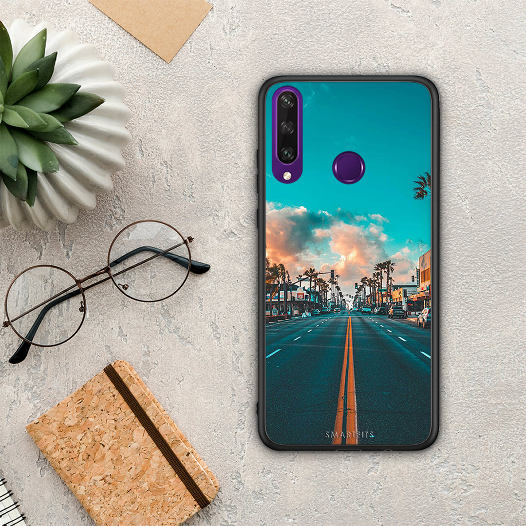 Θήκη Huawei Y6p City Landscape από τη Smartfits με σχέδιο στο πίσω μέρος και μαύρο περίβλημα | Huawei Y6p City Landscape case with colorful back and black bezels