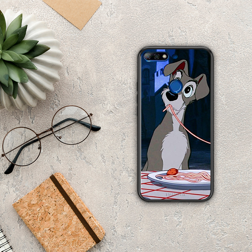 Θήκη Αγίου Βαλεντίνου Huawei Y7 2018 Lady And Tramp 1 από τη Smartfits με σχέδιο στο πίσω μέρος και μαύρο περίβλημα | Huawei Y7 2018 Lady And Tramp 1 case with colorful back and black bezels