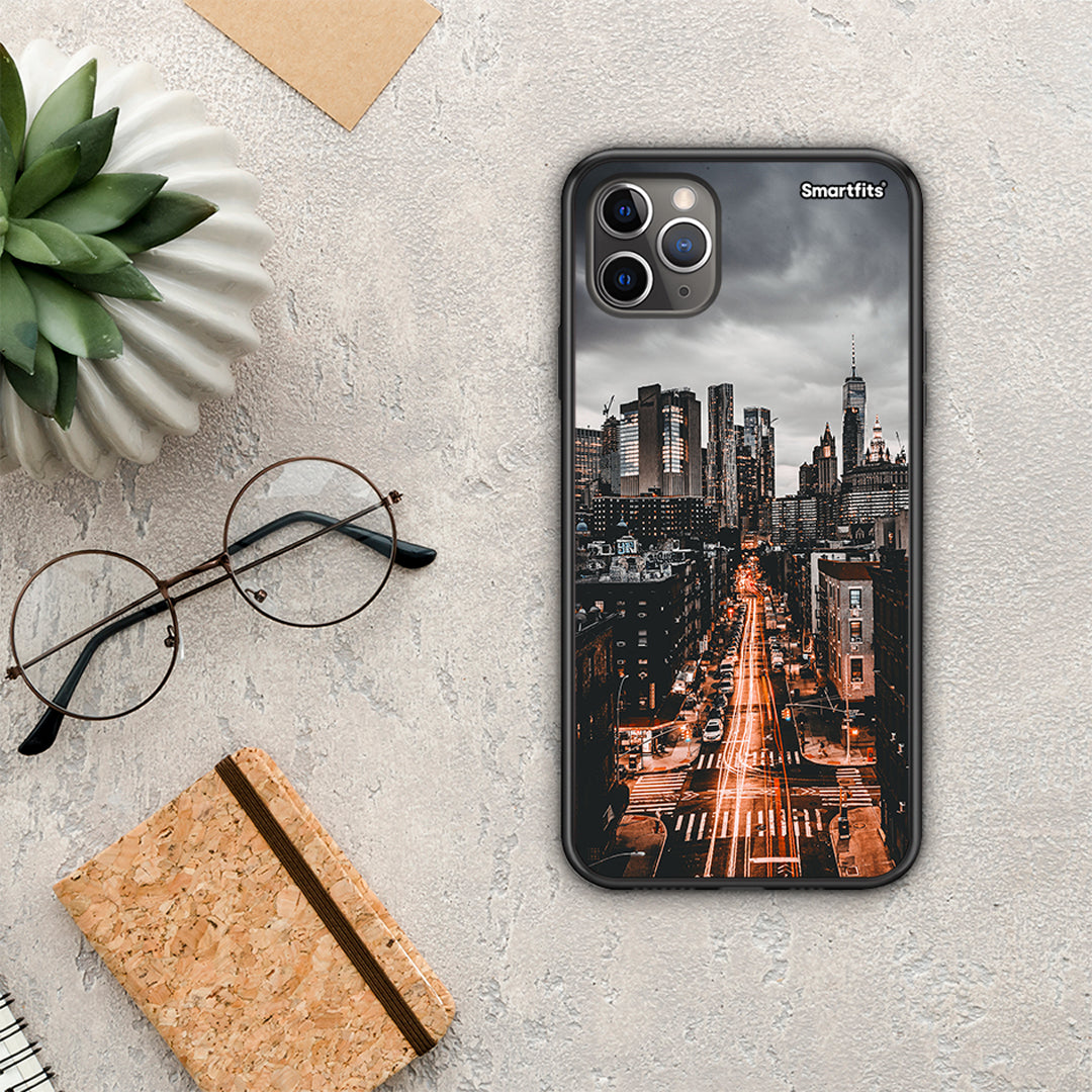 Θήκη iPhone 11 Pro Max City Lights από τη Smartfits με σχέδιο στο πίσω μέρος και μαύρο περίβλημα | iPhone 11 Pro Max City Lights case with colorful back and black bezels