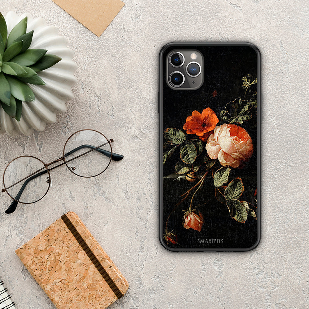 Θήκη iPhone 11 Pro Max Vintage Roses από τη Smartfits με σχέδιο στο πίσω μέρος και μαύρο περίβλημα | iPhone 11 Pro Max Vintage Roses case with colorful back and black bezels