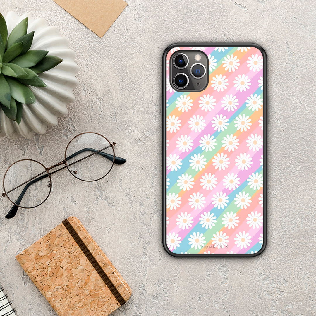 Θήκη iPhone 11 Pro Max White Daisies από τη Smartfits με σχέδιο στο πίσω μέρος και μαύρο περίβλημα | iPhone 11 Pro Max White Daisies case with colorful back and black bezels
