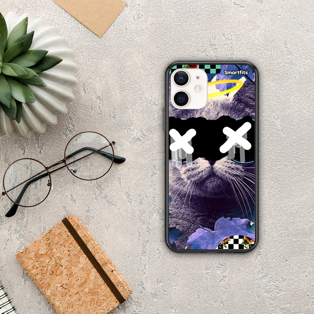 Θήκη iPhone 12 Mini Cat Collage από τη Smartfits με σχέδιο στο πίσω μέρος και μαύρο περίβλημα | iPhone 12 Mini Cat Collage case with colorful back and black bezels