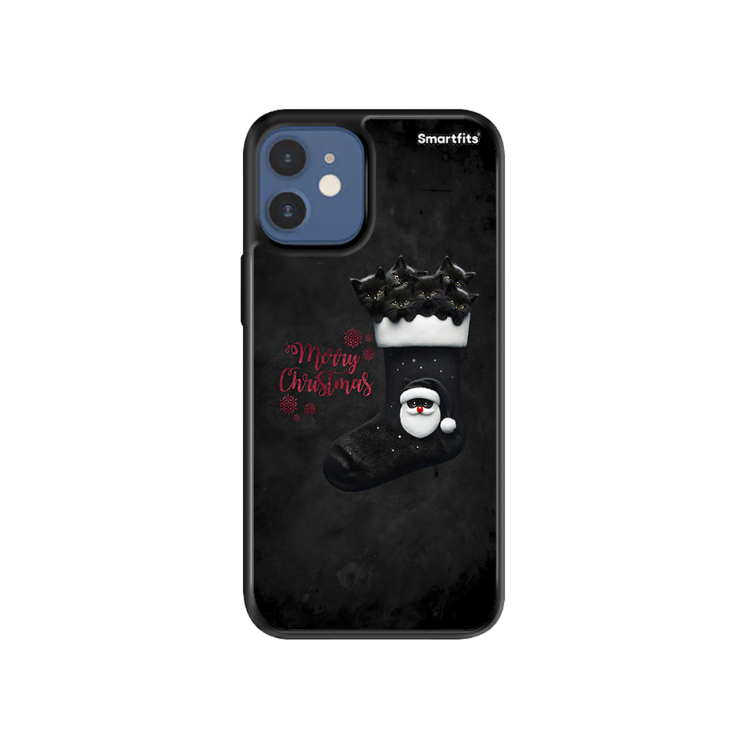 Θήκη iPhone 12 Mini Merry Cat Christmas από τη Smartfits με σχέδιο στο πίσω μέρος και μαύρο περίβλημα | iPhone 12 Mini Merry Cat Christmas case with colorful back and black bezels