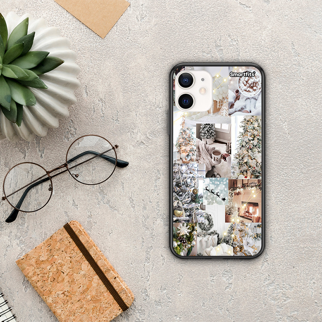 Θήκη iPhone 12 Mini White Christmas από τη Smartfits με σχέδιο στο πίσω μέρος και μαύρο περίβλημα | iPhone 12 Mini White Christmas case with colorful back and black bezels