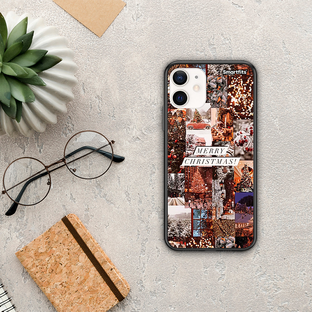 Θήκη iPhone 12 Mini Xmas Collage από τη Smartfits με σχέδιο στο πίσω μέρος και μαύρο περίβλημα | iPhone 12 Mini Xmas Collage case with colorful back and black bezels