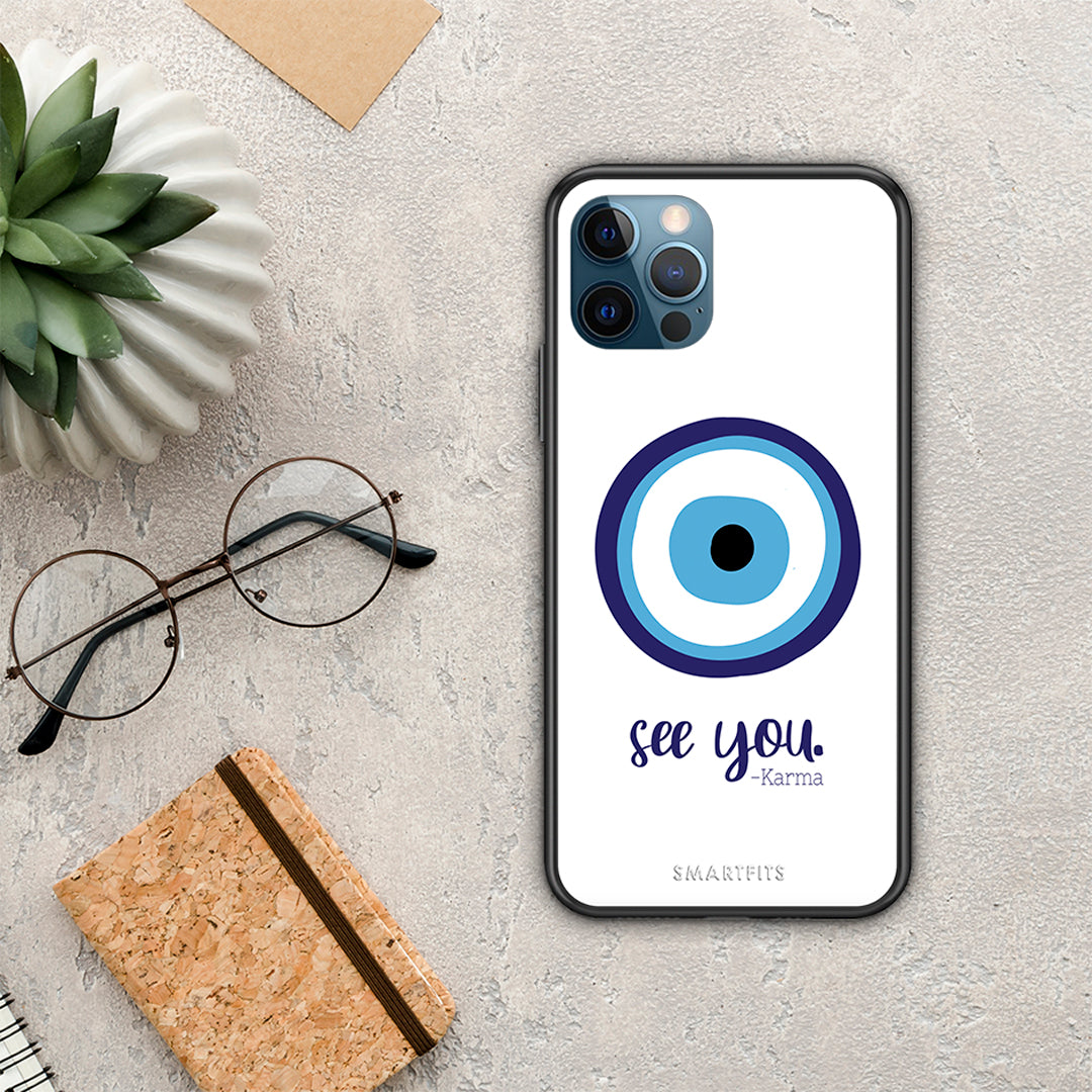 Θήκη iPhone 12 Pro Max Karma Says από τη Smartfits με σχέδιο στο πίσω μέρος και μαύρο περίβλημα | iPhone 12 Pro Max Karma Says case with colorful back and black bezels