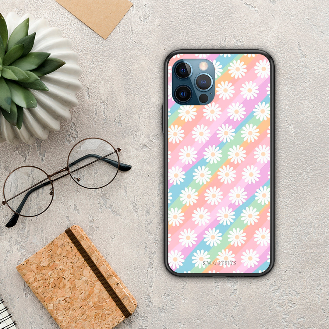 Θήκη iPhone 12 Pro Max White Daisies από τη Smartfits με σχέδιο στο πίσω μέρος και μαύρο περίβλημα | iPhone 12 Pro Max White Daisies case with colorful back and black bezels