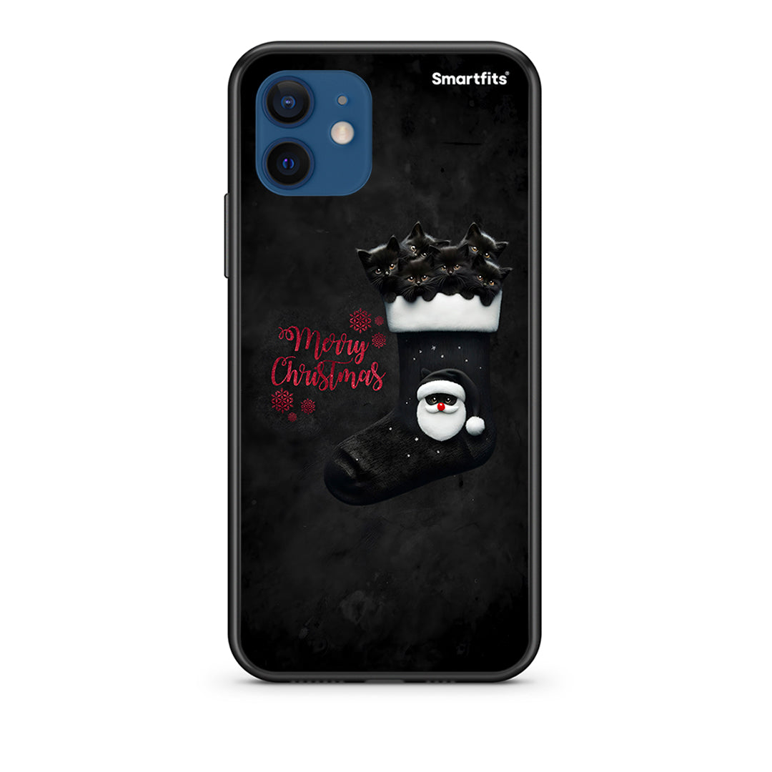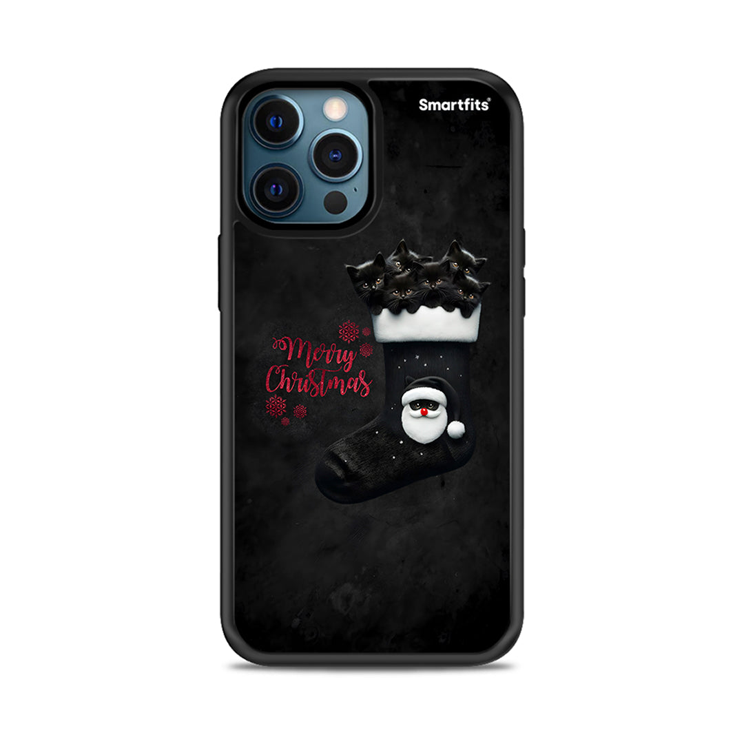 Θήκη iPhone 12 Pro Merry Cat Christmas από τη Smartfits με σχέδιο στο πίσω μέρος και μαύρο περίβλημα | iPhone 12 Pro Merry Cat Christmas case with colorful back and black bezels
