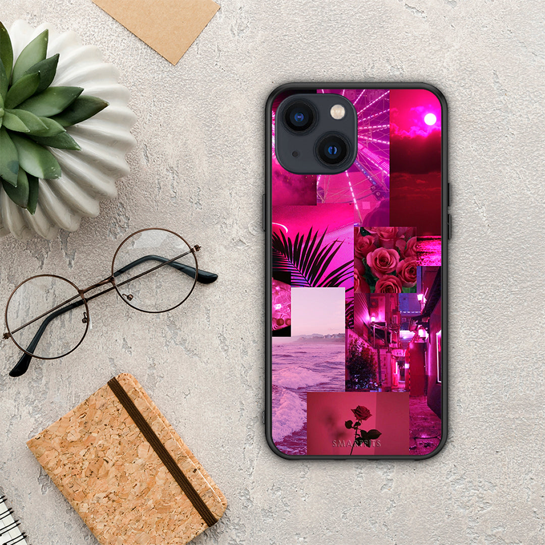 Θήκη Αγίου Βαλεντίνου iPhone 13 Collage Red Roses από τη Smartfits με σχέδιο στο πίσω μέρος και μαύρο περίβλημα | iPhone 13 Collage Red Roses case with colorful back and black bezels