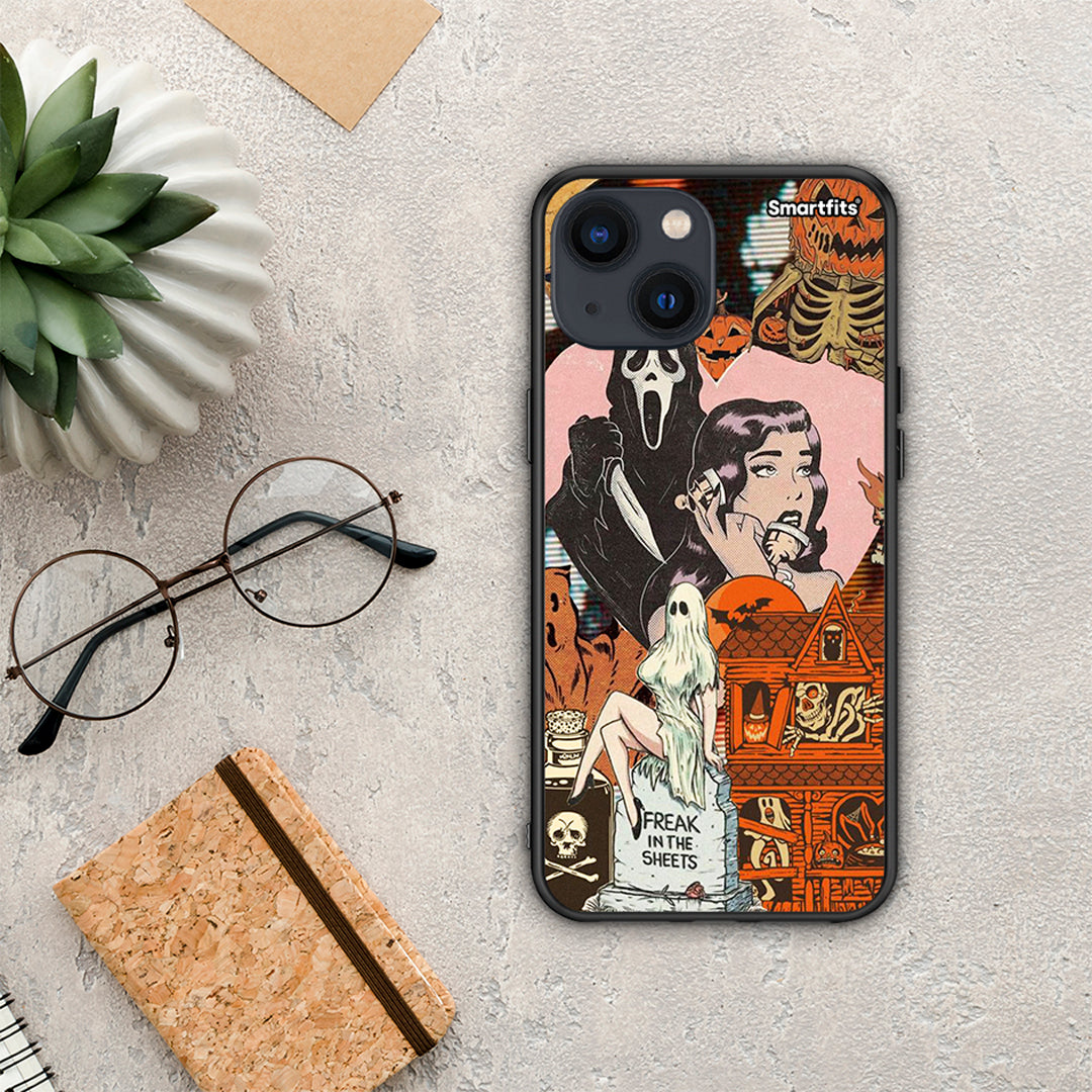 Θήκη iPhone 13 Mini Halloween Collage από τη Smartfits με σχέδιο στο πίσω μέρος και μαύρο περίβλημα | iPhone 13 Mini Halloween Collage case with colorful back and black bezels