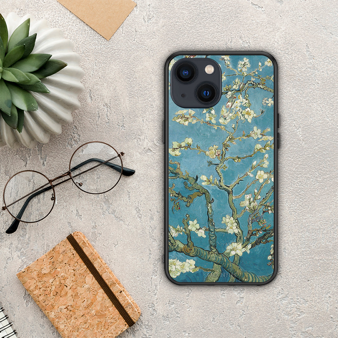Θήκη iPhone 13 Mini White Blossoms από τη Smartfits με σχέδιο στο πίσω μέρος και μαύρο περίβλημα | iPhone 13 Mini White Blossoms case with colorful back and black bezels