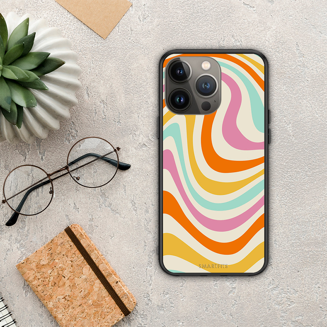 Θήκη iPhone 13 Pro Max Colourful Waves από τη Smartfits με σχέδιο στο πίσω μέρος και μαύρο περίβλημα | iPhone 13 Pro Max Colourful Waves case with colorful back and black bezels