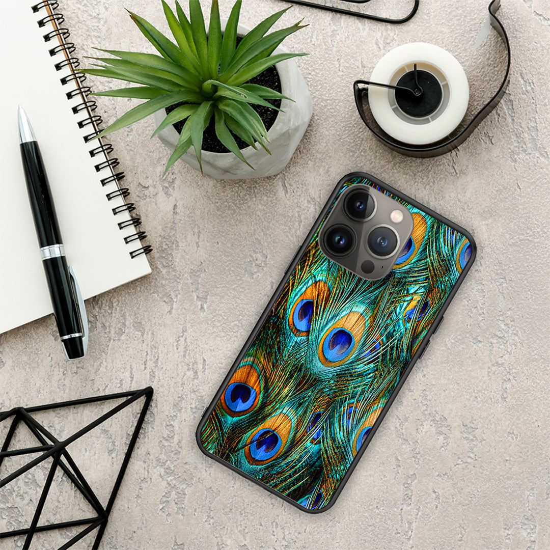 Θήκη iPhone 13 Pro Max Real Peacock Feathers από τη Smartfits με σχέδιο στο πίσω μέρος και μαύρο περίβλημα | iPhone 13 Pro Max Real Peacock Feathers case with colorful back and black bezels