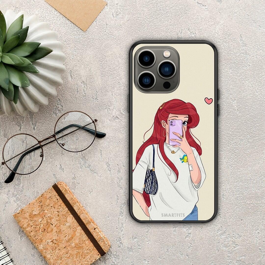 Θήκη iPhone 13 Pro Walking Mermaid από τη Smartfits με σχέδιο στο πίσω μέρος και μαύρο περίβλημα | iPhone 13 Pro Walking Mermaid case with colorful back and black bezels