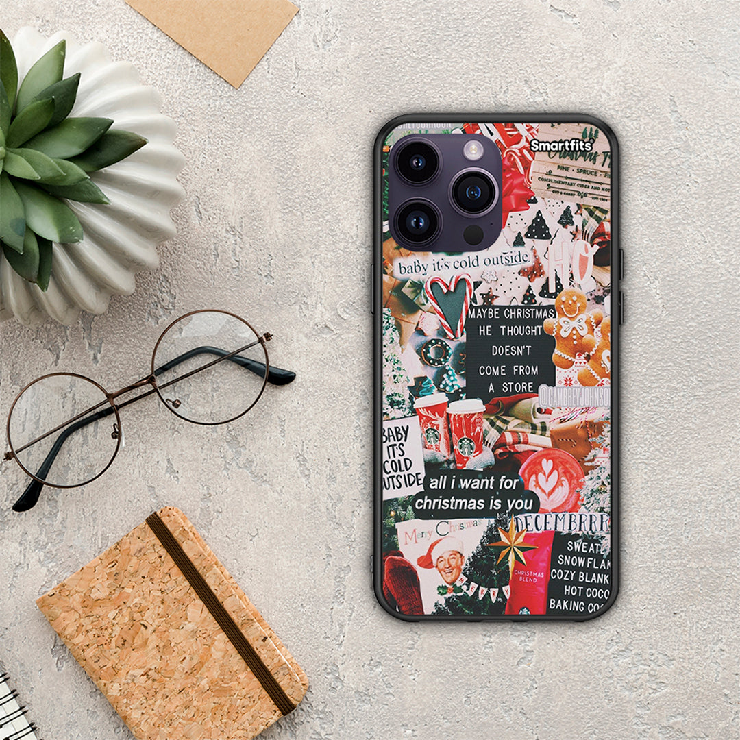 Θήκη iPhone 14 Pro Christmas Happiness από τη Smartfits με σχέδιο στο πίσω μέρος και μαύρο περίβλημα | iPhone 14 Pro Christmas Happiness case with colorful back and black bezels
