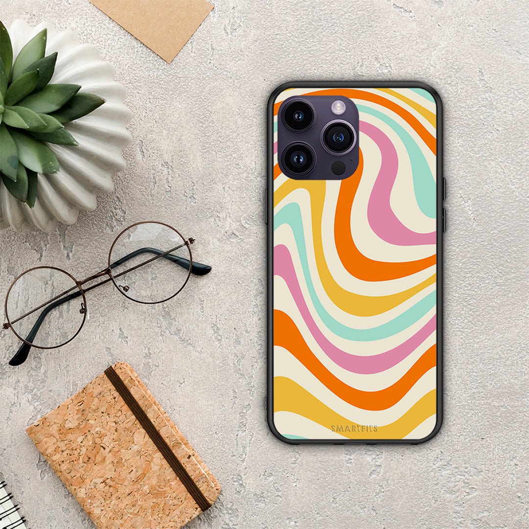 Θήκη iPhone 14 Pro Colourful Waves από τη Smartfits με σχέδιο στο πίσω μέρος και μαύρο περίβλημα | iPhone 14 Pro Colourful Waves case with colorful back and black bezels