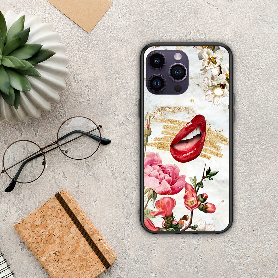 Θήκη iPhone 14 Pro Red Lips από τη Smartfits με σχέδιο στο πίσω μέρος και μαύρο περίβλημα | iPhone 14 Pro Red Lips case with colorful back and black bezels