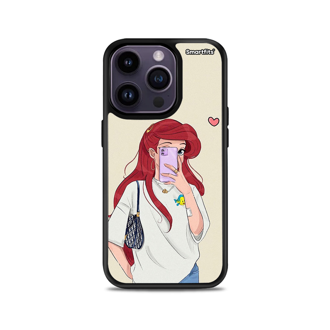 Θήκη iPhone 14 Pro Walking Mermaid από τη Smartfits με σχέδιο στο πίσω μέρος και μαύρο περίβλημα | iPhone 14 Pro Walking Mermaid case with colorful back and black bezels