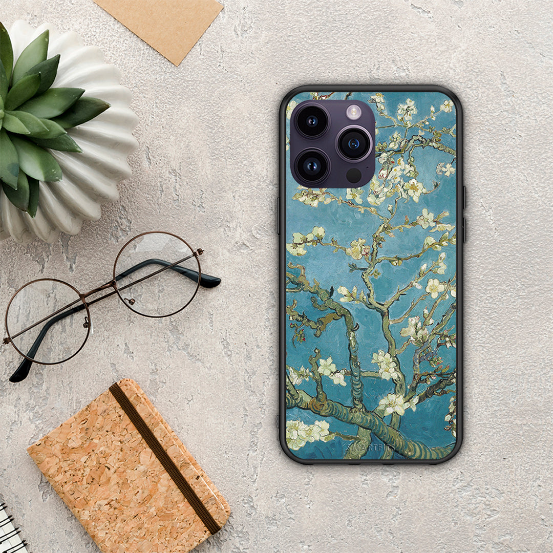 Θήκη iPhone 14 Pro White Blossoms από τη Smartfits με σχέδιο στο πίσω μέρος και μαύρο περίβλημα | iPhone 14 Pro White Blossoms case with colorful back and black bezels