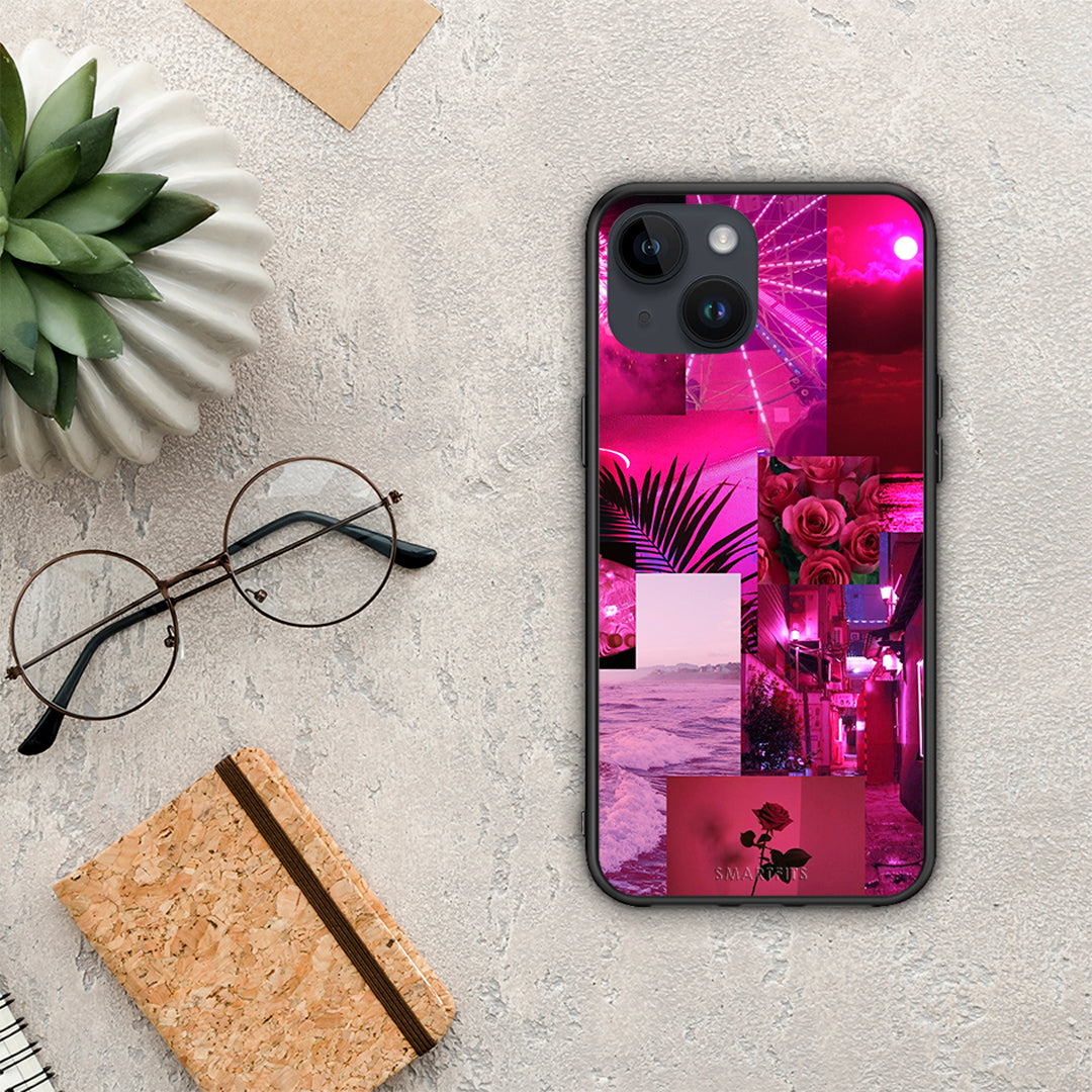 Θήκη Αγίου Βαλεντίνου iPhone 15 Collage Red Roses από τη Smartfits με σχέδιο στο πίσω μέρος και μαύρο περίβλημα | iPhone 15 Collage Red Roses case with colorful back and black bezels