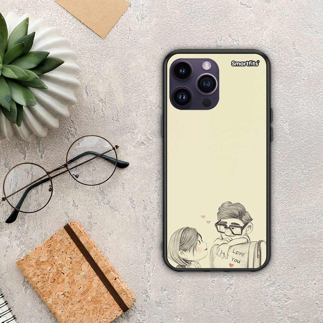 Θήκη iPhone 15 Pro Carl And Ellie από τη Smartfits με σχέδιο στο πίσω μέρος και μαύρο περίβλημα | iPhone 15 Pro Carl And Ellie case with colorful back and black bezels