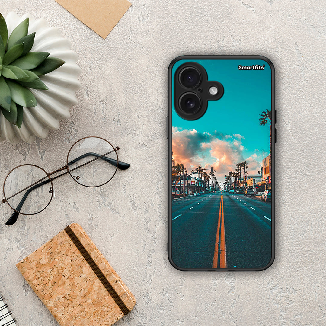Θήκη iPhone 16 City Landscape από τη Smartfits με σχέδιο στο πίσω μέρος και μαύρο περίβλημα | iPhone 16 City Landscape case with colorful back and black bezels