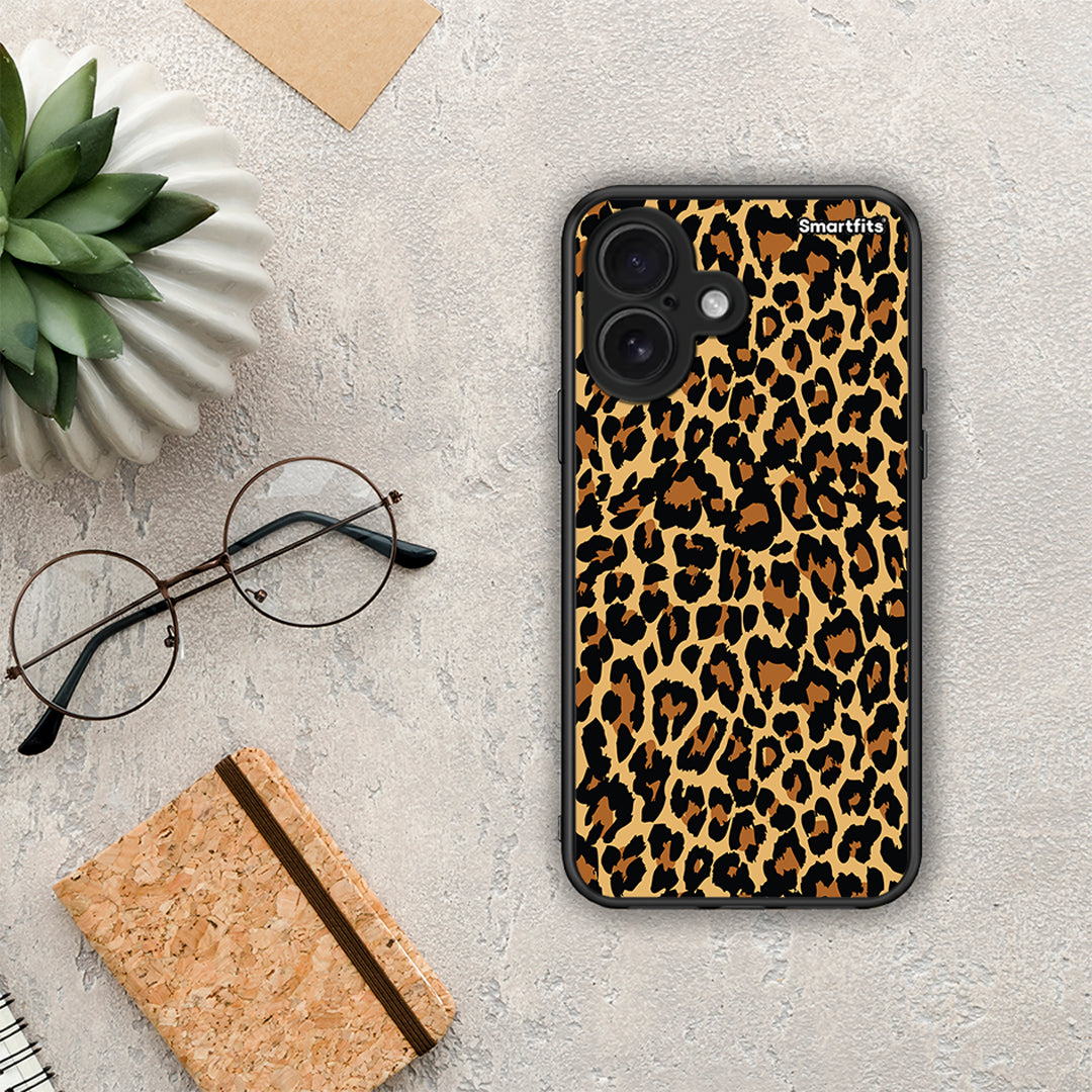 Θήκη iPhone 16 Leopard Animal από τη Smartfits με σχέδιο στο πίσω μέρος και μαύρο περίβλημα | iPhone 16 Leopard Animal case with colorful back and black bezels