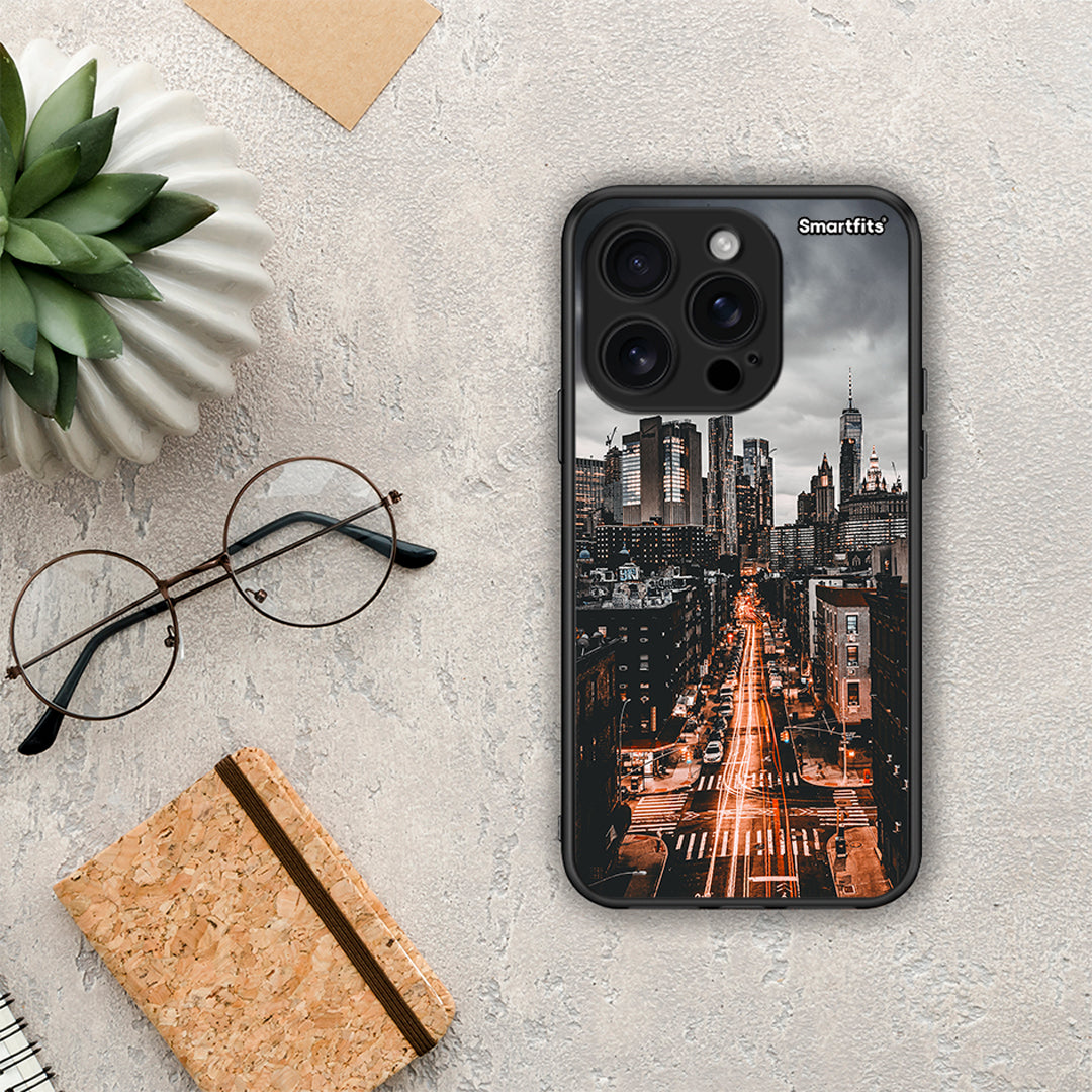 Θήκη iPhone 16 Pro City Lights από τη Smartfits με σχέδιο στο πίσω μέρος και μαύρο περίβλημα | iPhone 16 Pro City Lights case with colorful back and black bezels
