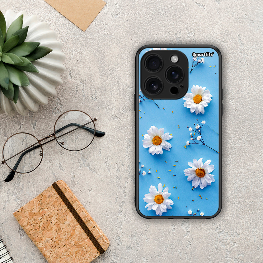 Θήκη iPhone 16 Pro Real Daisies από τη Smartfits με σχέδιο στο πίσω μέρος και μαύρο περίβλημα | iPhone 16 Pro Real Daisies case with colorful back and black bezels