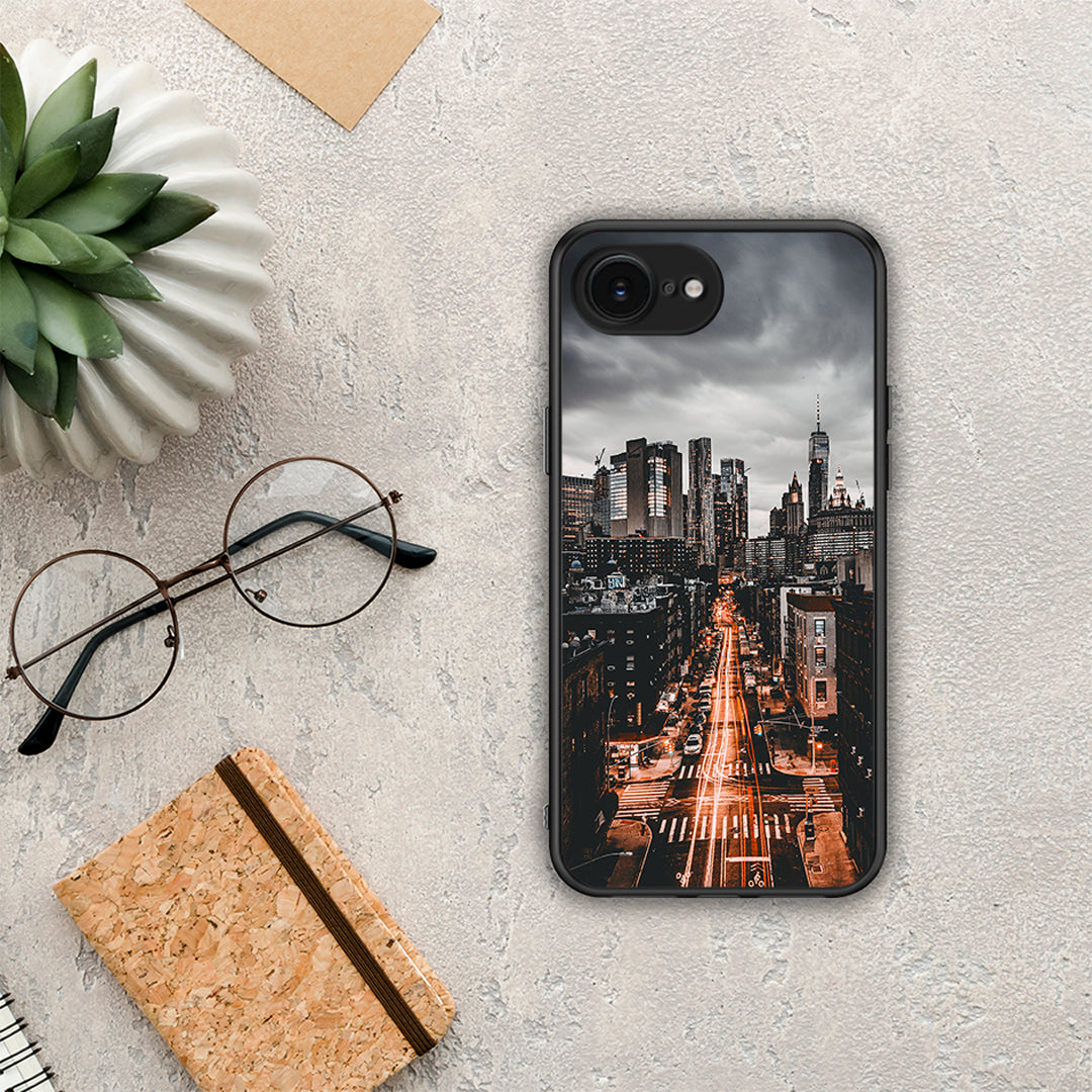 Θήκη iPhone 16e City Lights από τη Smartfits με σχέδιο στο πίσω μέρος και μαύρο περίβλημα | iPhone 16e City Lights case with colorful back and black bezels