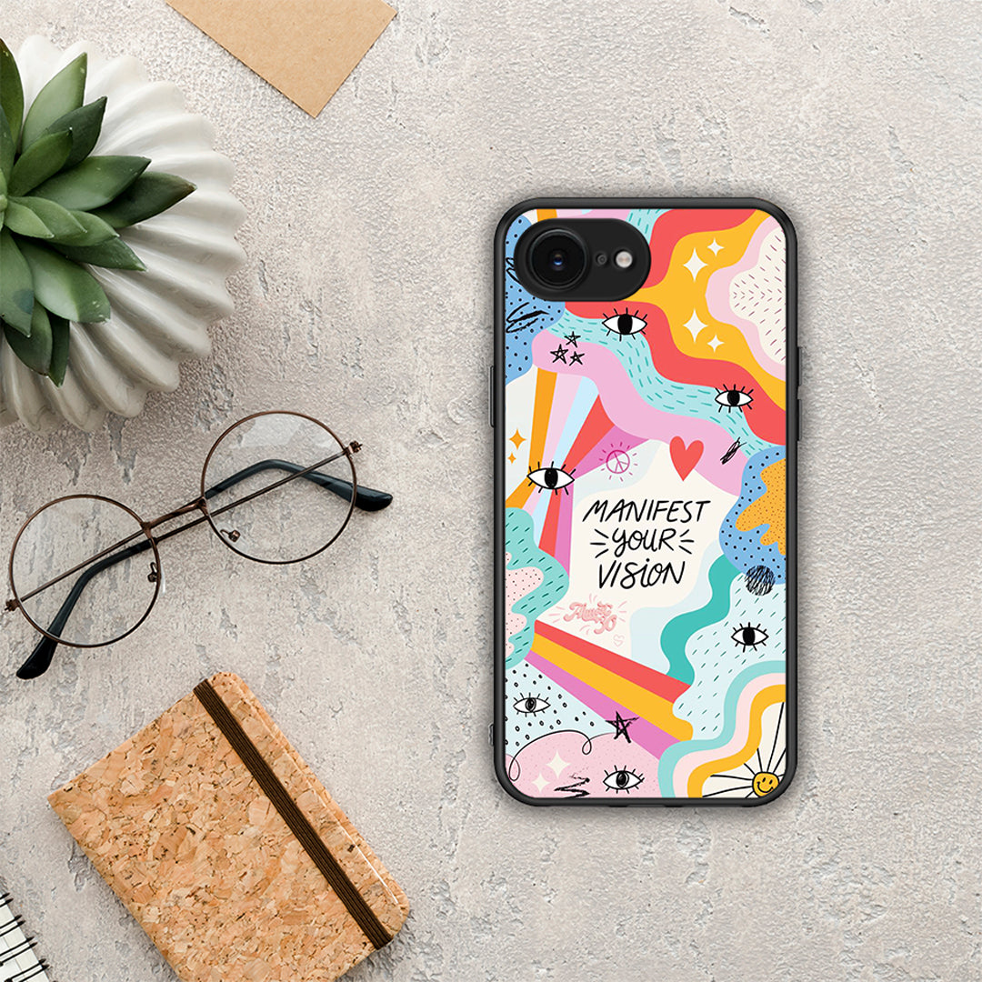 Θήκη iPhone 16e Manifest Your Vision από τη Smartfits με σχέδιο στο πίσω μέρος και μαύρο περίβλημα | iPhone 16e Manifest Your Vision case with colorful back and black bezels