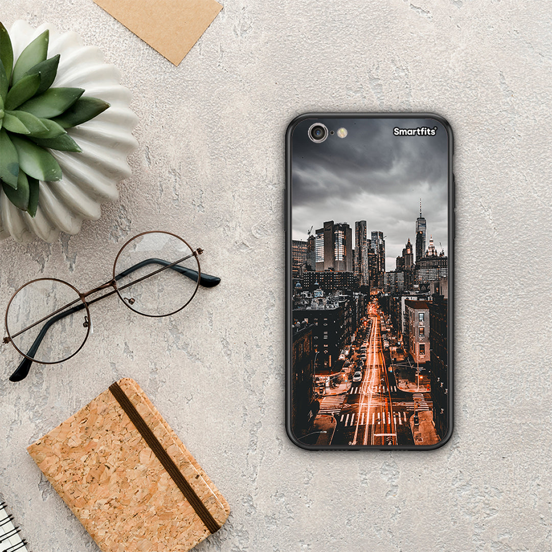 Θήκη iPhone 6/6s City Lights από τη Smartfits με σχέδιο στο πίσω μέρος και μαύρο περίβλημα | iPhone 6/6s City Lights case with colorful back and black bezels