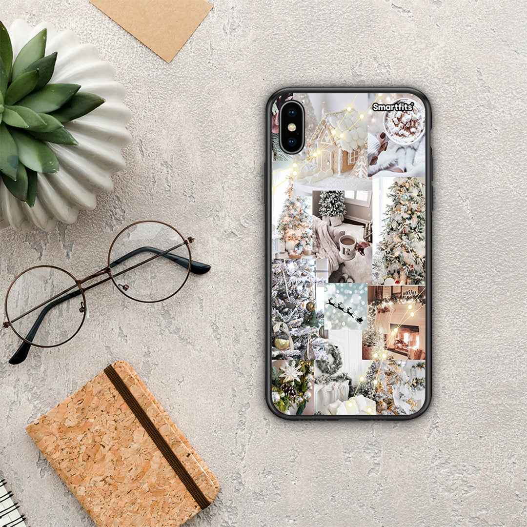 Θήκη iPhone X/Xs White Christmas από τη Smartfits με σχέδιο στο πίσω μέρος και μαύρο περίβλημα | iPhone X/Xs White Christmas case with colorful back and black bezels