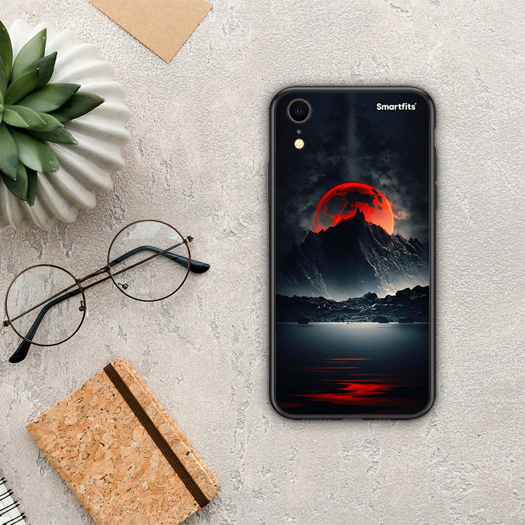 Θήκη iPhone XR Red Full Moon από τη Smartfits με σχέδιο στο πίσω μέρος και μαύρο περίβλημα | iPhone XR Red Full Moon case with colorful back and black bezels